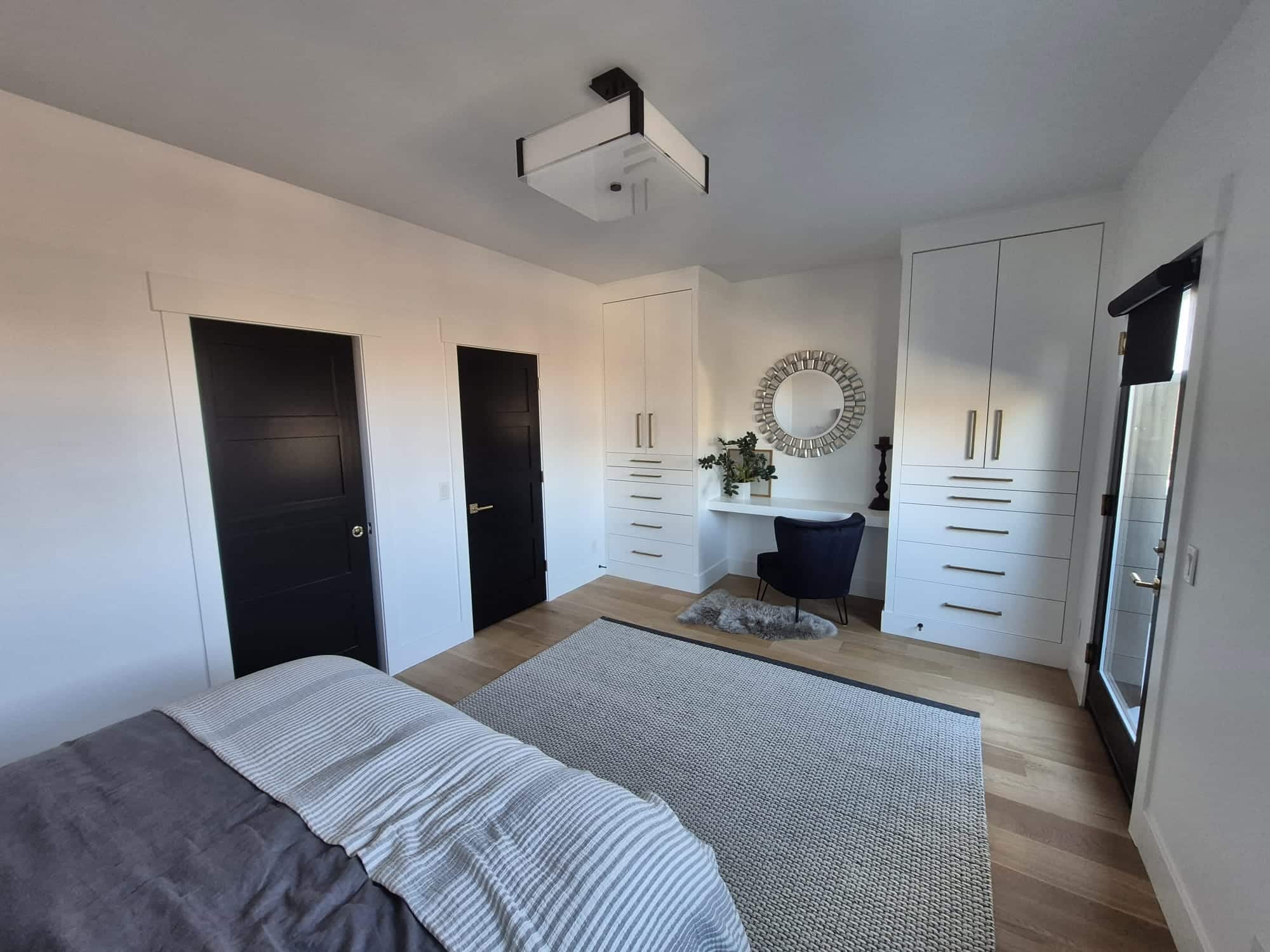 The walls carry a soft glow that shifts throughout the day. The trim adds quiet definition, guiding the eye with subtle contrast. The doors feel substantial and refined, reinforcing the sense of quality in every interaction.